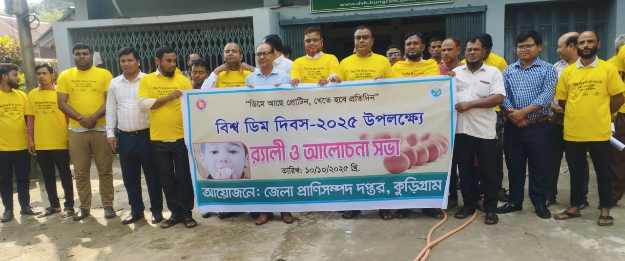 "ডিমে আছে প্রোটিন, খেতে হবে প্রতিদিন"- এই স্লোগানকে ধারণ করে নানা আয়োজনে কুড়িগ্রামে পালিত হয়েছে বিশ্ব ডিম দিবস-২০২৫।