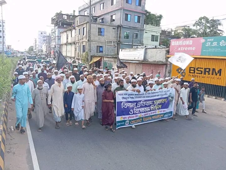 চট্টগ্রামের রাউজানে নর্থ সাউথ ইউনিভার্সিটির ছাত্র অপূর্ব পাল কর্তৃক পবিত্র কোরআন অবমাননার প্রতিবাদে এবং তার সর্বোচ্চ শাস্তির দাবীতে বিক্ষোভ মিছিল ও প্রতিবাদ সমাবেশ করেছে হেফাজত ইসলাম বাংলাদেশ রাউজান উপজেলা শাখা।