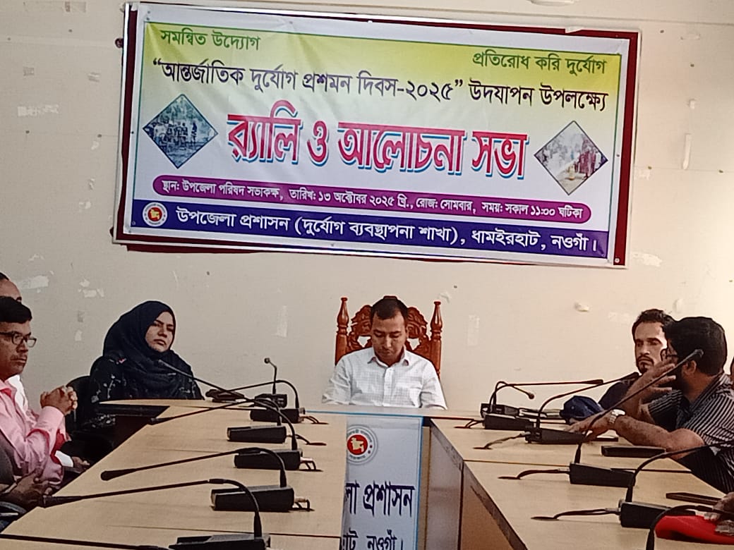 নওগাঁর ধামইরহাটে আন্তর্জাতিক প্রশমন দূর্যোগ দিবস পালিত হয়েছে। ১৩ অক্টোবর সোমবার সকাল ১১ টায় উপজেলা প্রশাসন ও প্রকল্প বাস্তবায়নে প্রশমন দূর্যোগ ব্যবস্হাপনার আয়োজনে আন্তর্জাতিক প্রশমন দূর্যোগ দিবস উপলক্ষে উপজেলা চত্বর থেকে এক রালি বের করে।