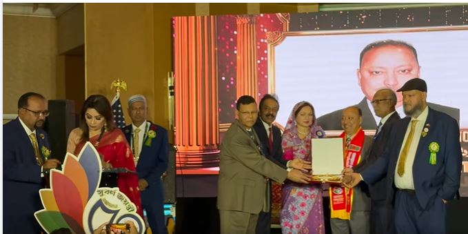 নিউইয়র্কে বাংলাদেশ সোসাইটি ইনক’র সুবর্ণজয়ন্তী উদযাপন অনুষ্ঠানে মোশাররফ হোসেন চৌধুরীকে সম্মাননা প্রদান