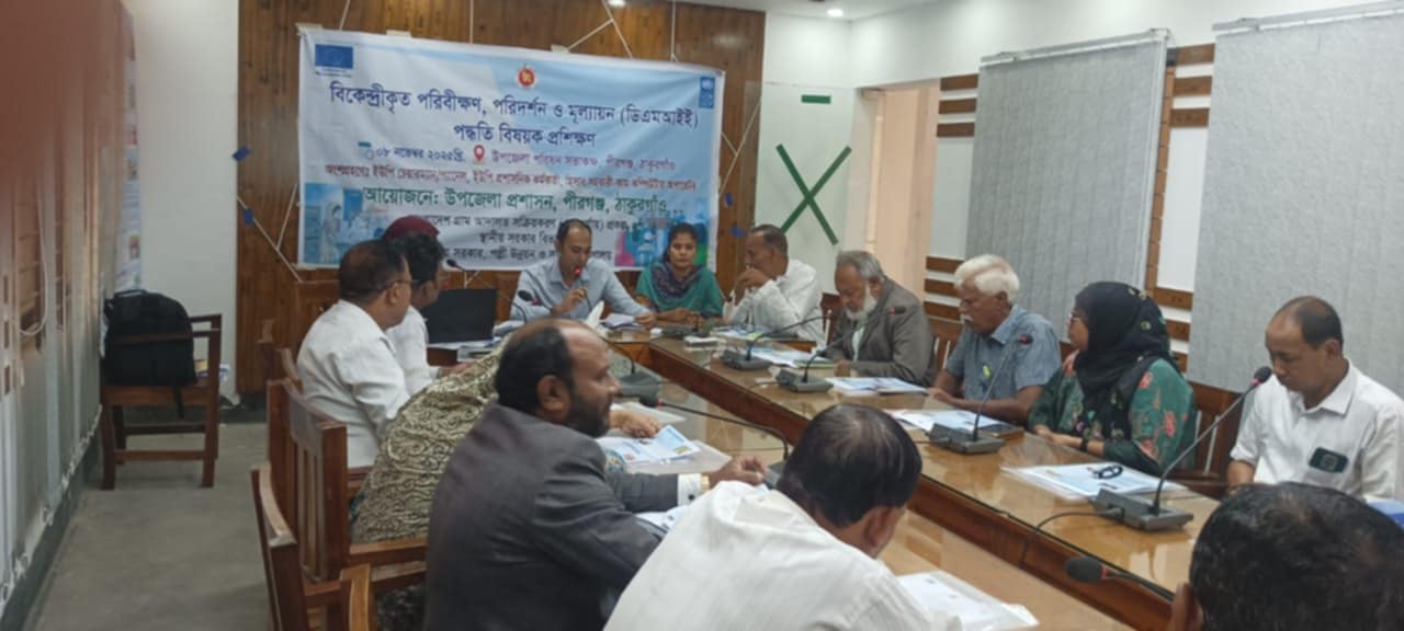 ঠাকুরগাঁওয়ের পীরগঞ্জে গ্রাম আদালতের কার্যক্রম আরও গতিশীল ও স্বচ্ছ করার লক্ষ্যে “বিকেন্দ্রীকৃত পরিবীক্ষণ, পরিদর্শন ও মূল্যায়ন (ডিএমআইই)” বিষয়ক প্রশিক্ষণ অনুষ্ঠিত হয়েছে। শনিবার (তারিখ) উপজেলা পরিষদ সম্মেলন কক্ষে উপজেলা প্রশাসনের আয়োজনে এই প্রশিক্ষণ কর্মশালাটি অনুষ্ঠিত হয়।