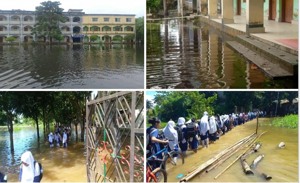 নবম শ্রেণির ছাত্রী নওরীন জাহান রিয়া বলেন, “প্রতিদিন স্কুলে আসা ভয়ঙ্কর হয়ে গেছে। বর্ষাকালে পানি ডিঙিয়ে আসতে গিয়ে ঝুঁকির মুখে পড়তে হয়। এখন পুরো রাস্তা পানির নিচে। এতে পড়াশোনার ক্ষতি ছাড়াও ছাত্রীদের নিরাপত্তা হুমকির মধ্যে রয়েছে।”