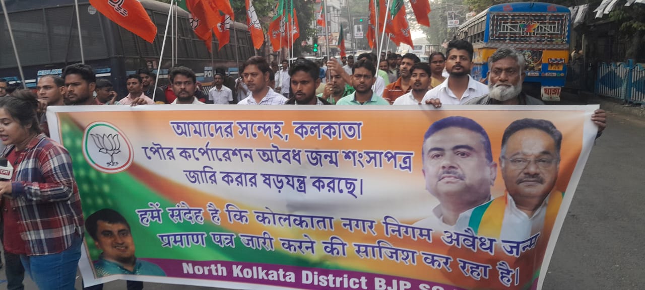 গত ৪ঠা ডিসেম্বর বৃহস্পতিবার, ঠিক দুপুর তিনটায়, নর্থ কলকাতা ডিস্ট্রিক্ট বিজেপি এস সি, মোর্চার ডাকে এবং কালী খটিকের উদ্যোগে, শুভেন্দু অধিকারী, শমীক ভট্টাচার্য, তমঘ্ন ঘোষের নেতৃত্বে , কলকাতা পৌর কর্পোরেশনে , বেআইনিভাবে জন্ম শংসাপত্র দেওয়ায়, তারা সারা নিউমার্কেট চত্বর মিছিল করে এসে কর্পোরেশনের সামনে প্রতিবাদ জানান।