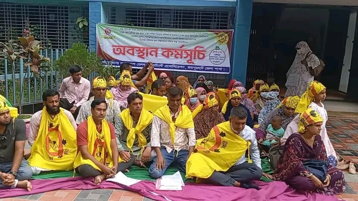 ৬ দফা দাবিতে জয়পুরহাটে স্বাস্থ্য সহকারীদের অবস্থান কর্মসূচি